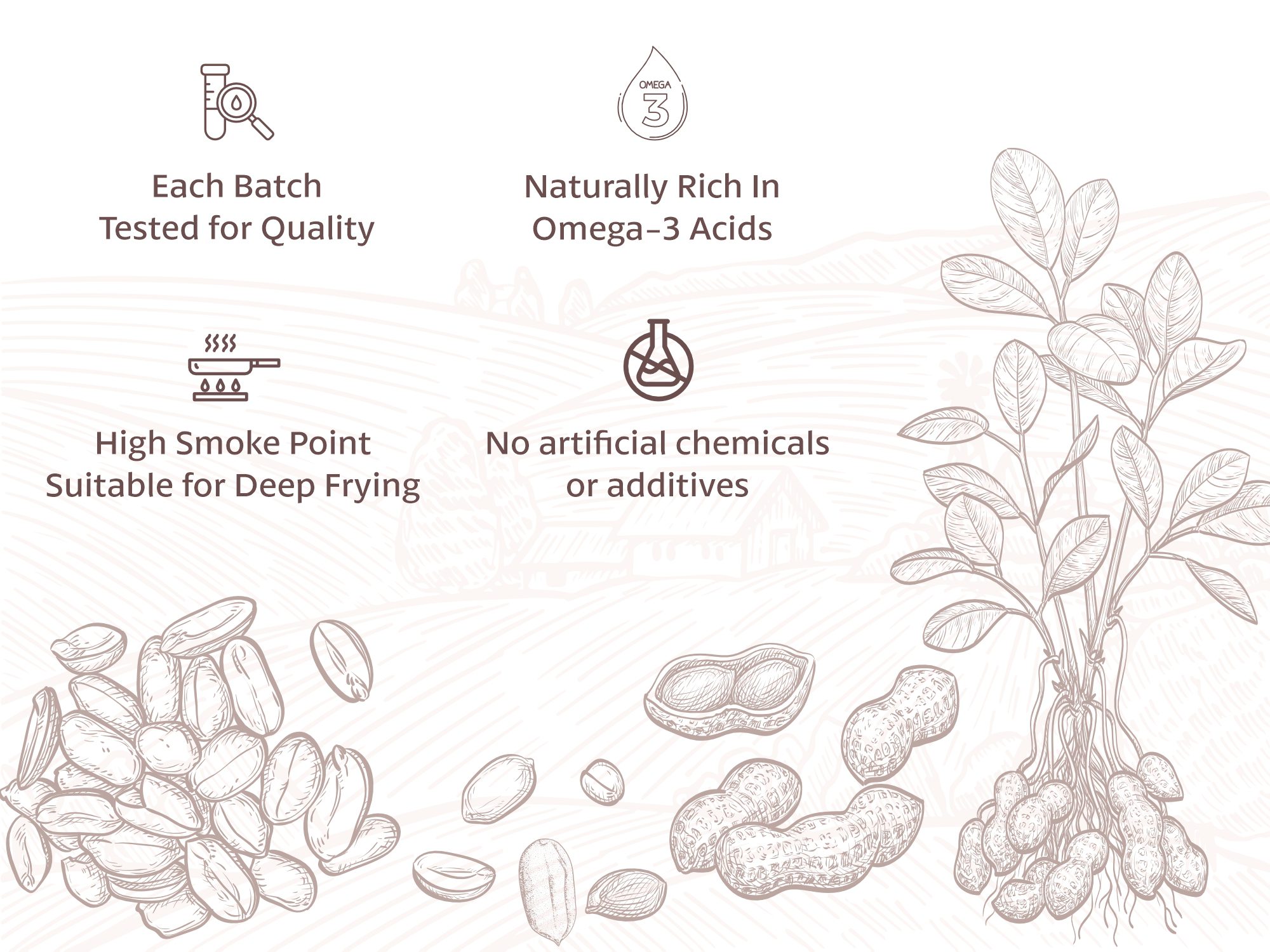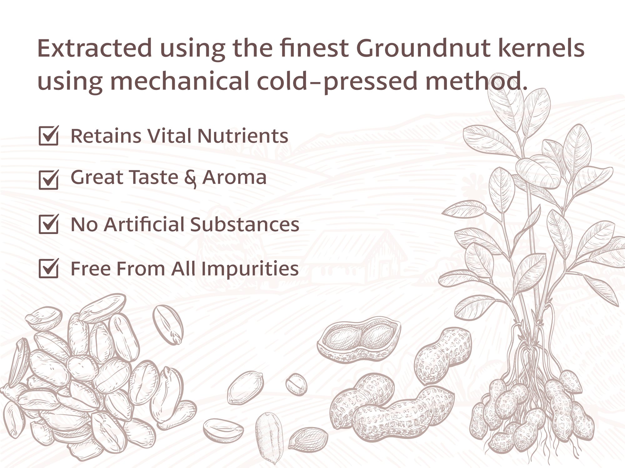 High in heart-healthy monounsaturated fats, it enhances your well-being while offering a high smoke point for versatile cooking. Elevate your dishes with the pure excellence of our groundnut oil – the perfect choice for both taste and nutrition.